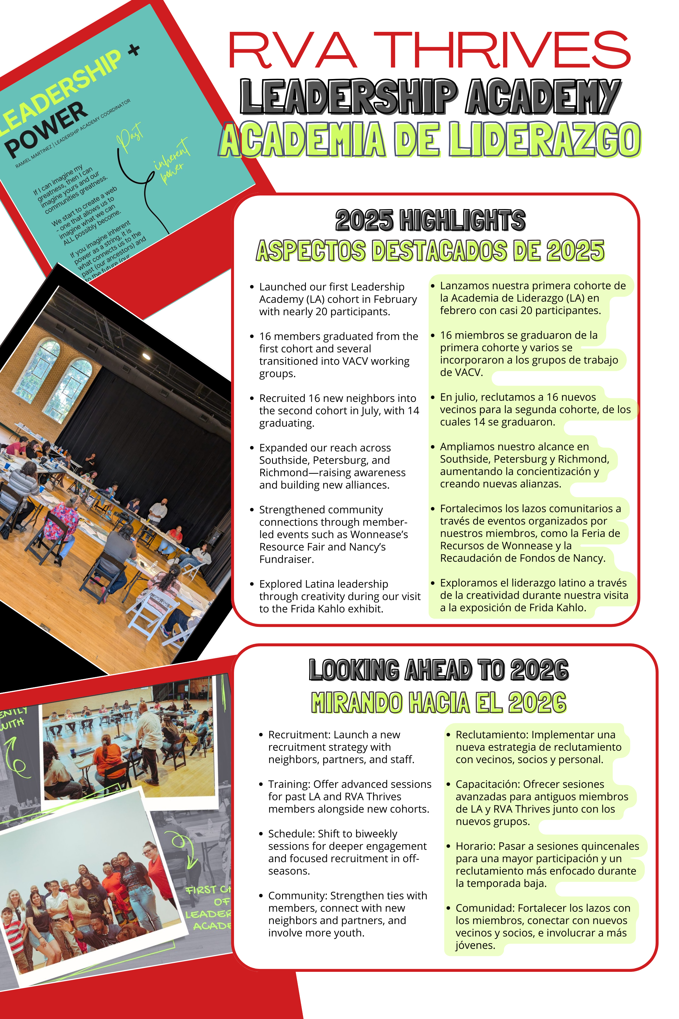 The Leadership Academy, an innovative program and an integral component of the RVA Thrives Initiative launched in 2025 is dedicated to nurturing the leadership potential of people from the Richmond’s Southside. This dynamic initiative provides a platform for emerging leaders to explore their capabilities, engage in meaningful dialogue, and drive positive change within their community.